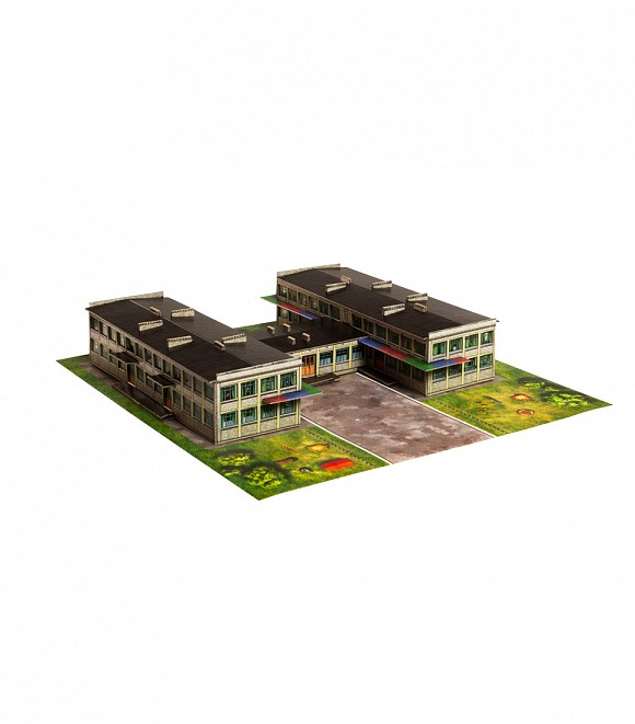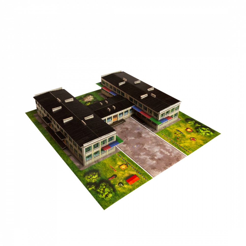 Здание Детского сада (лето). Сборная модель из картона. Масштаб 1/220